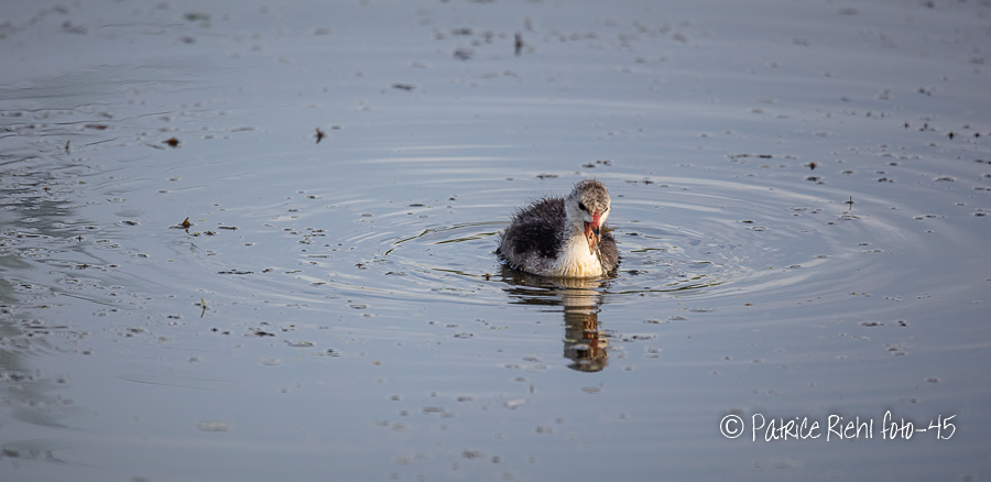Foulque Macroule avec petis au lac du der